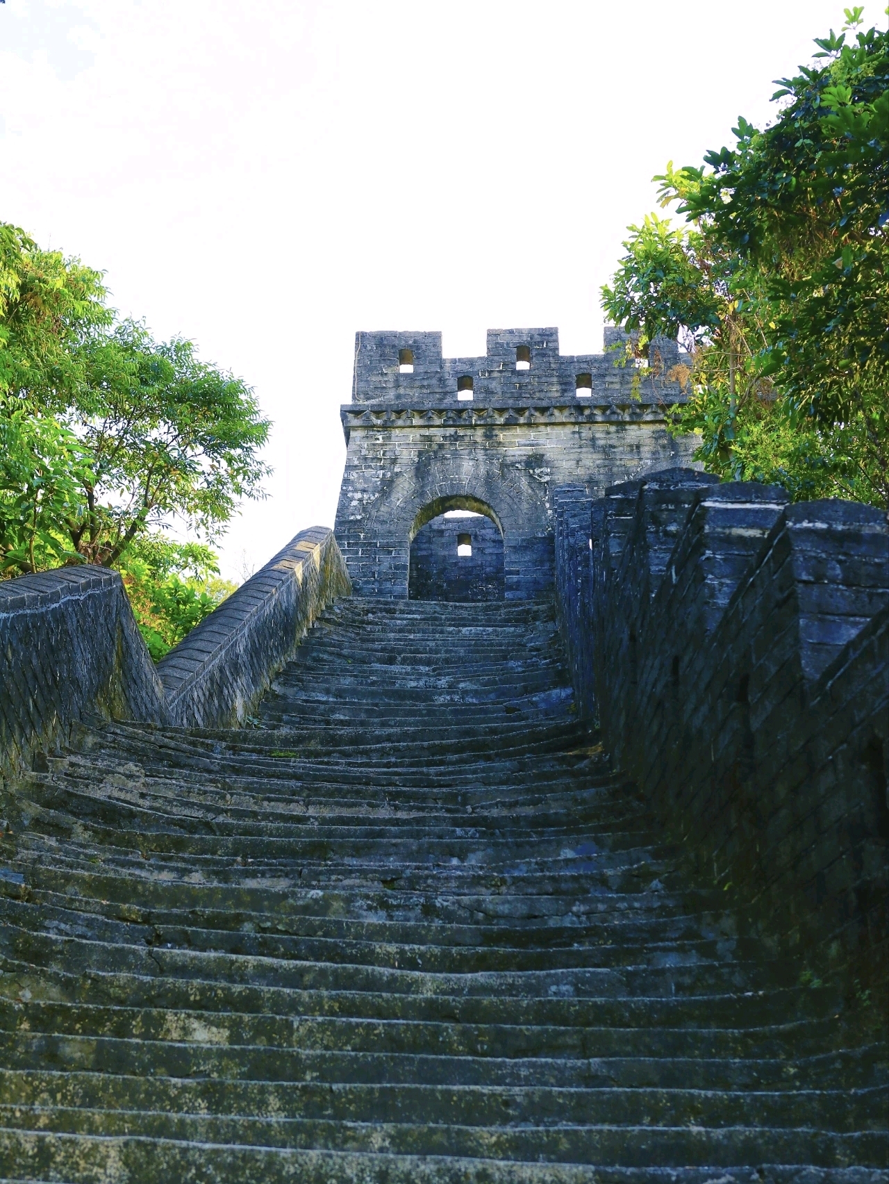 踏上復刻版的石板階梯,步道向著山頂蜿蜒伸展,前后望不到盡頭,瞬間有種 “穿越到八達嶺” 的錯覺。在步道上隨意行走,或是回眸淺笑,或是遠眺山景,又或是一步步向上登高,每一個動作都超有鏡頭感,妥妥的 “假裝在長城” 系列。