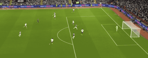 上半場進行到第45分鐘,維拉打出快速反擊,羅杰斯完全憑借個人能力,打出完美世界波,維拉取得領先。