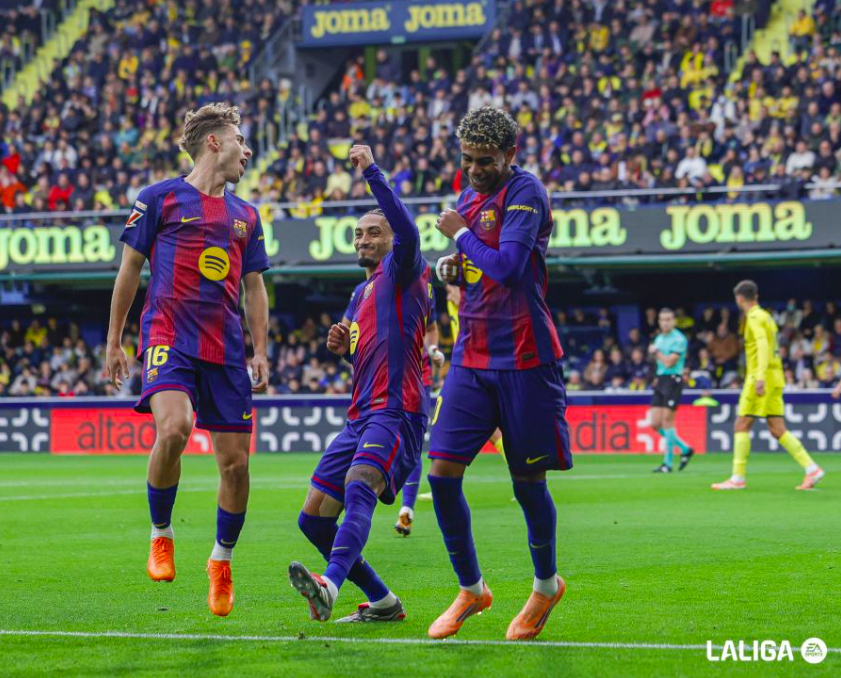 最終,巴薩客場2-0完勝排名第三的比利亞雷亞爾,迎來聯賽8連勝,繼續領先皇馬4分,強勢領跑。