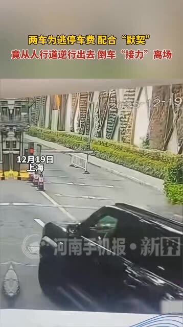 兩車為逃停車費配合“默契”,竟從人行道逆行出去,倒車“接力”離場。#停車場逃費