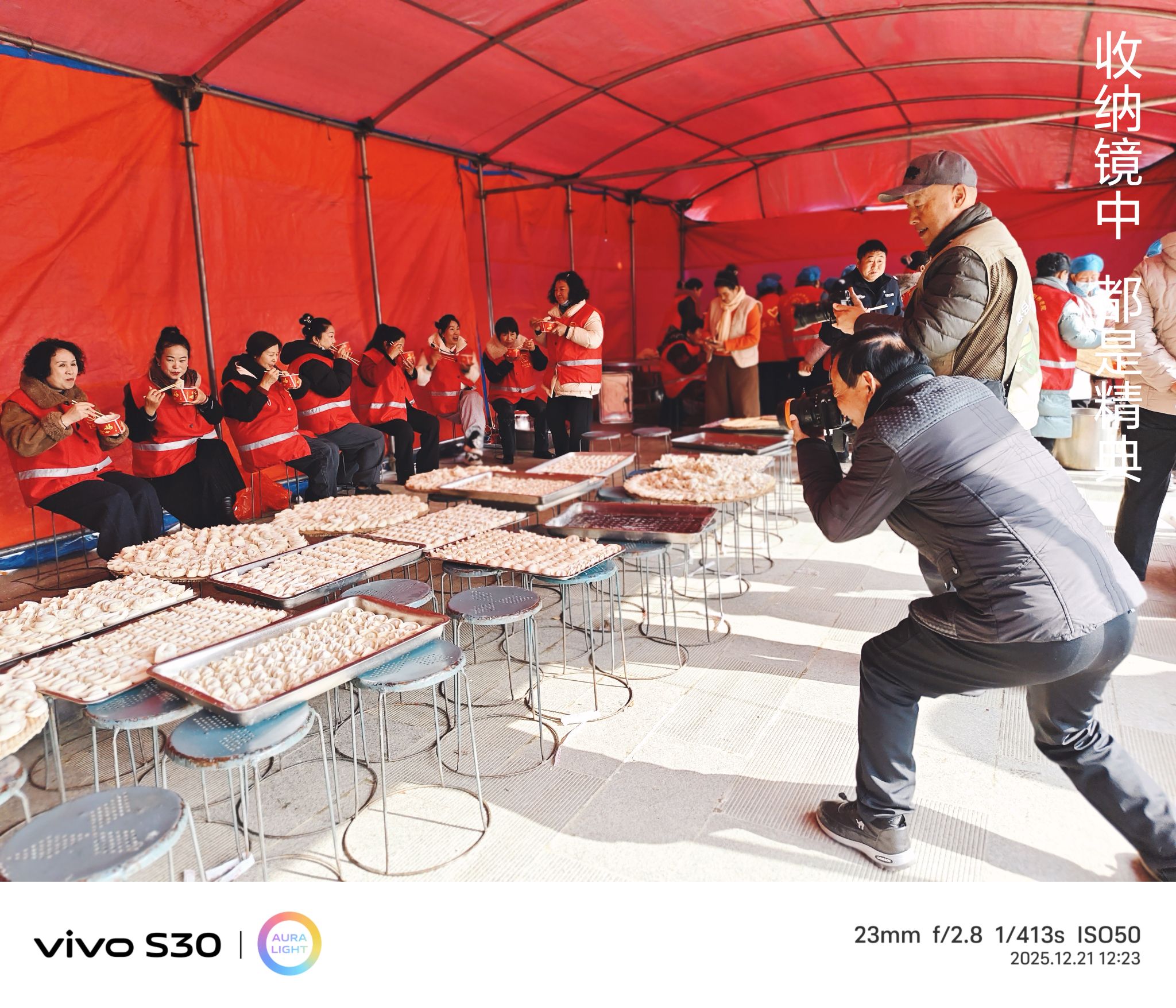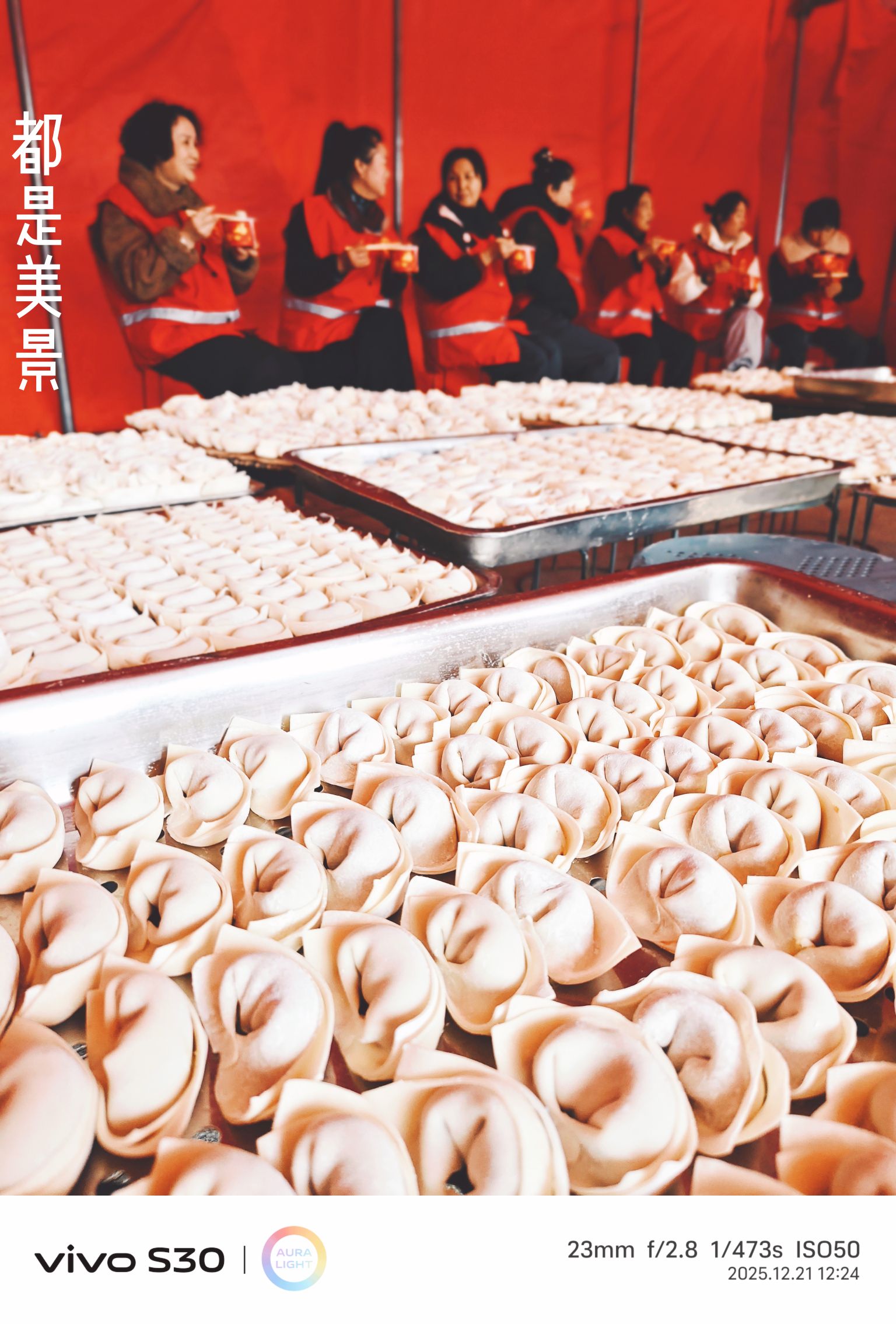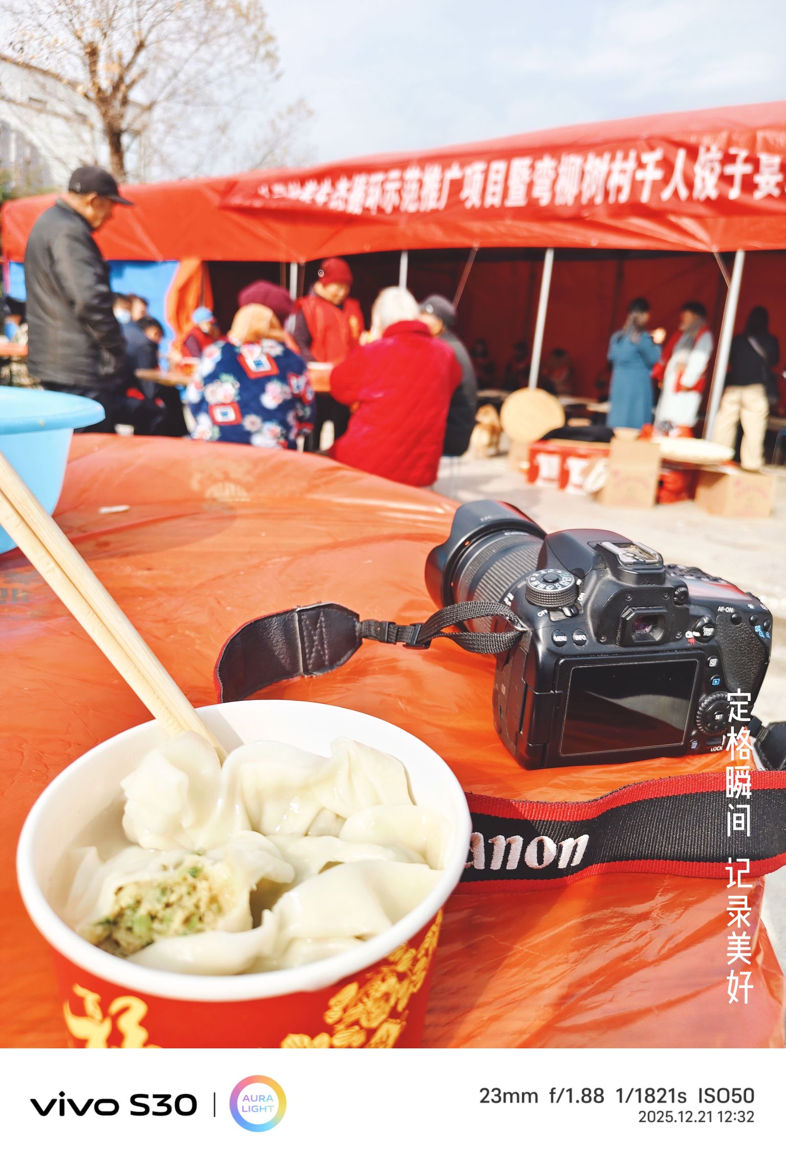 熱鬧如過年的彎柳樹廣場,來自有關方面的領導們,紛紛脫下冬日的厚裝,為受邀參加餃子宴的父老鄉親們,端來一盆又一盆、盛起一碗又一碗,冒著尖、飄著濃濃熱氣的噴香餃子。