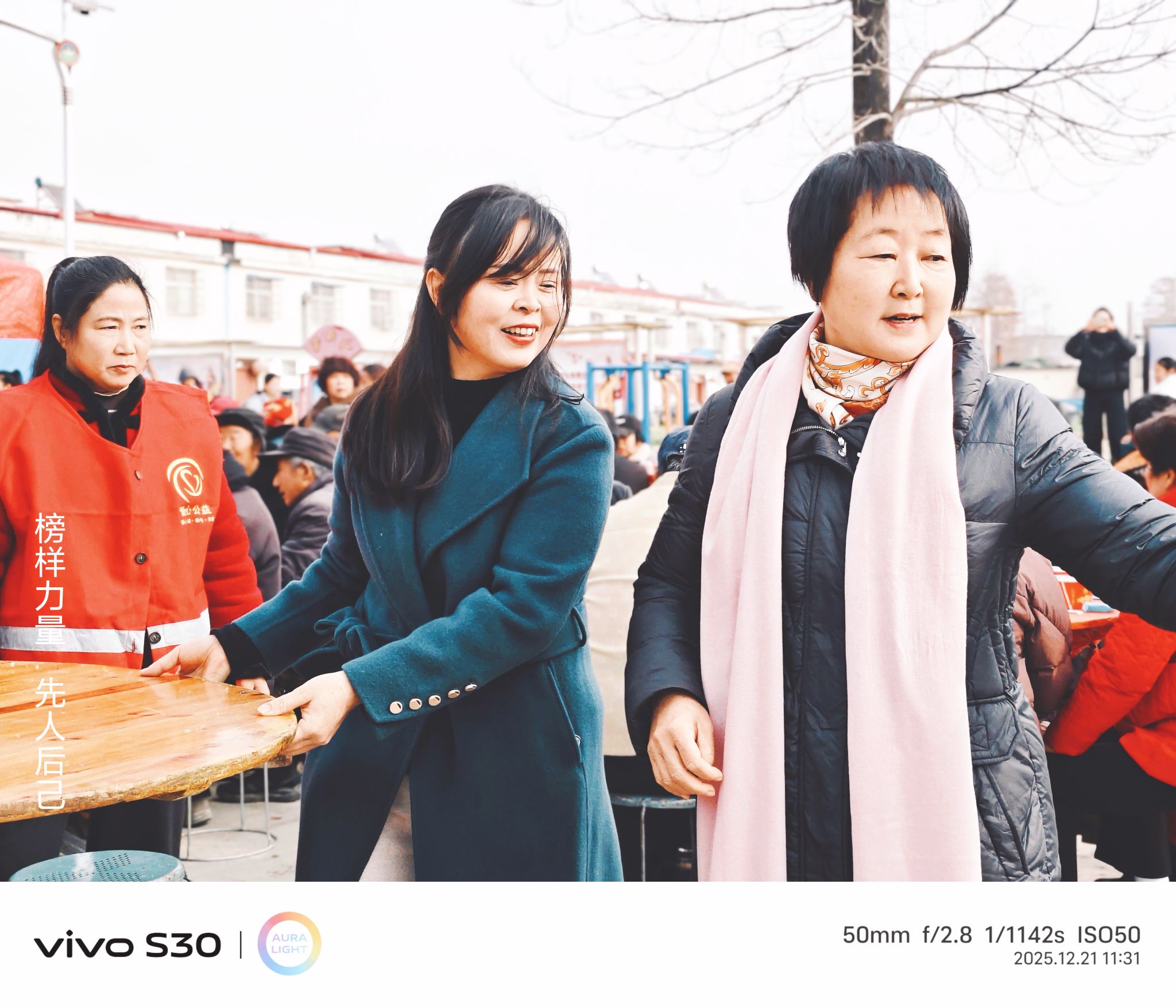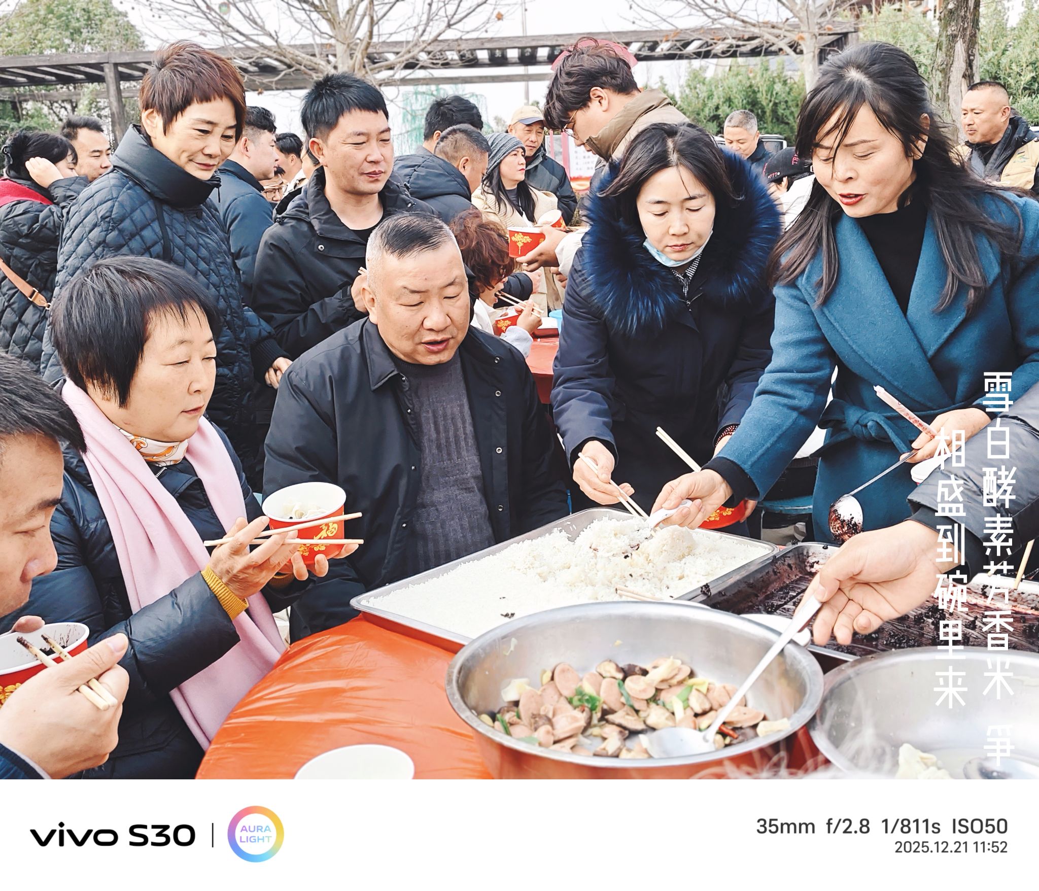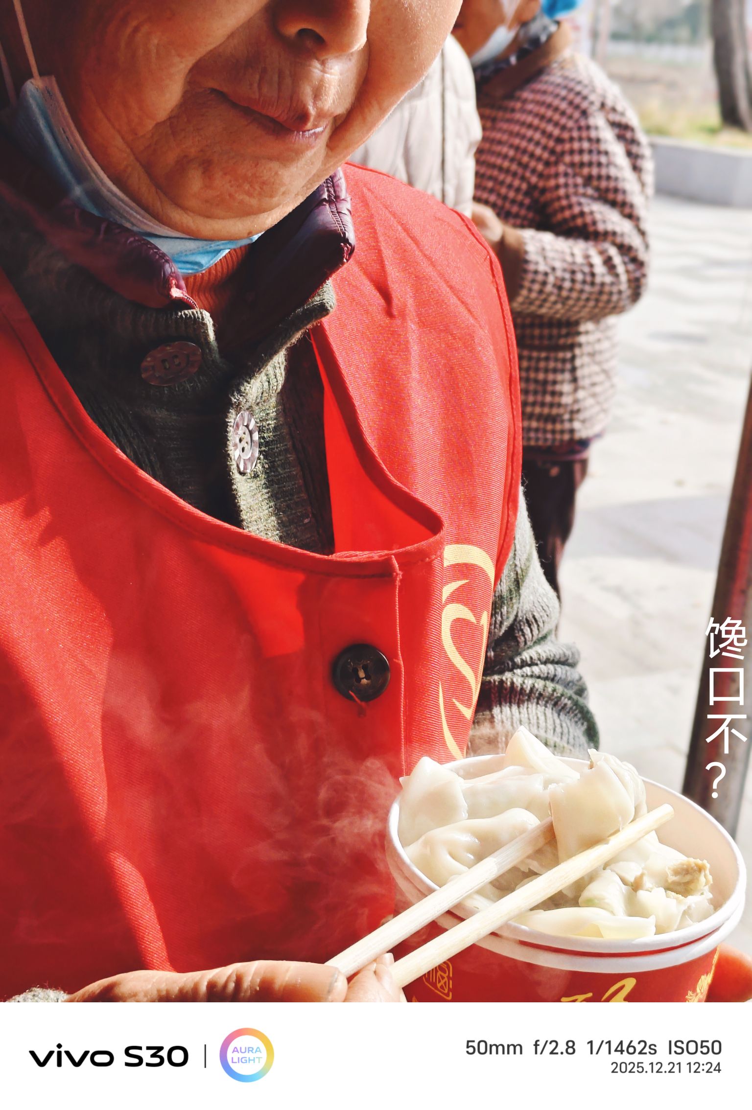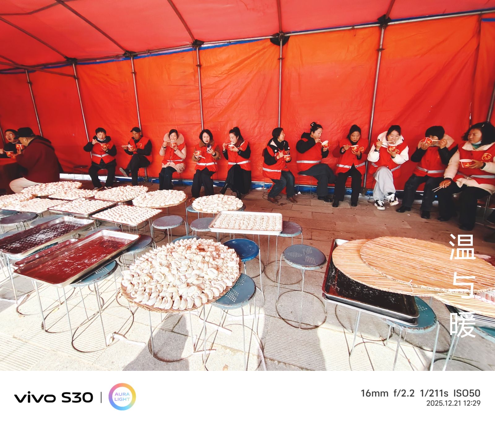熱鬧如過年的彎柳樹廣場,來自有關方面的領導們,紛紛脫下冬日的厚裝,為受邀參加餃子宴的父老鄉親們,端來一盆又一盆、盛起一碗又一碗,冒著尖、飄著濃濃熱氣的噴香餃子。