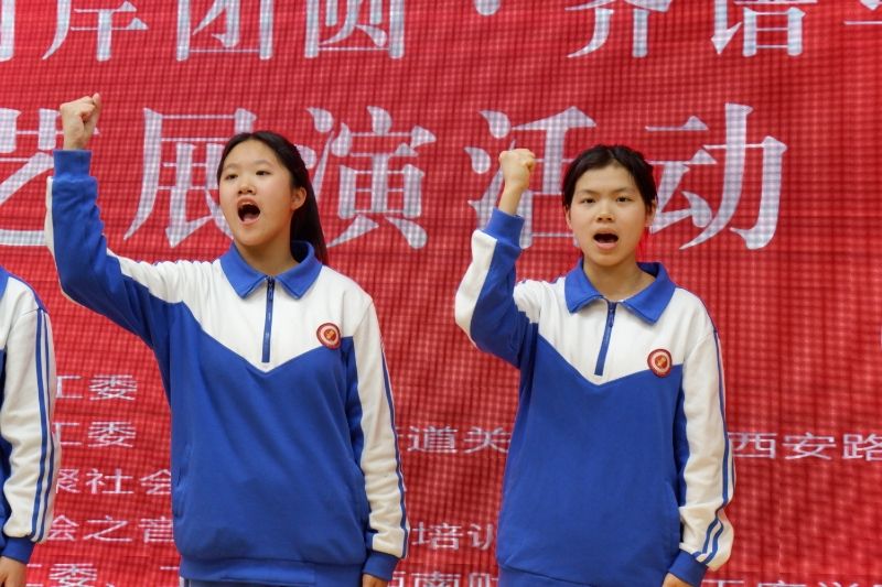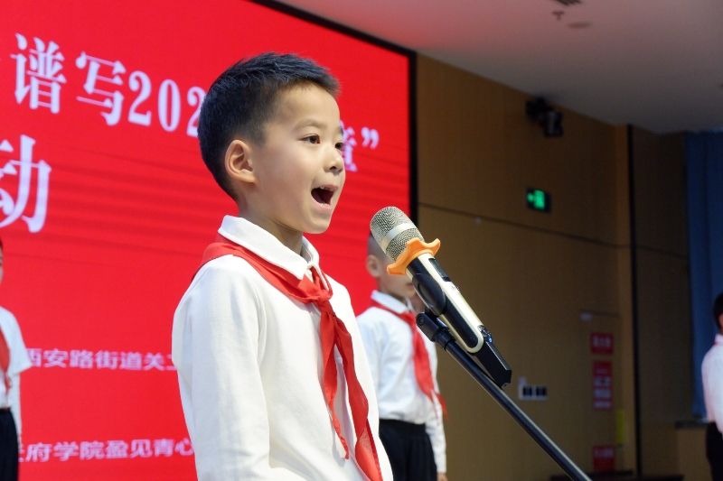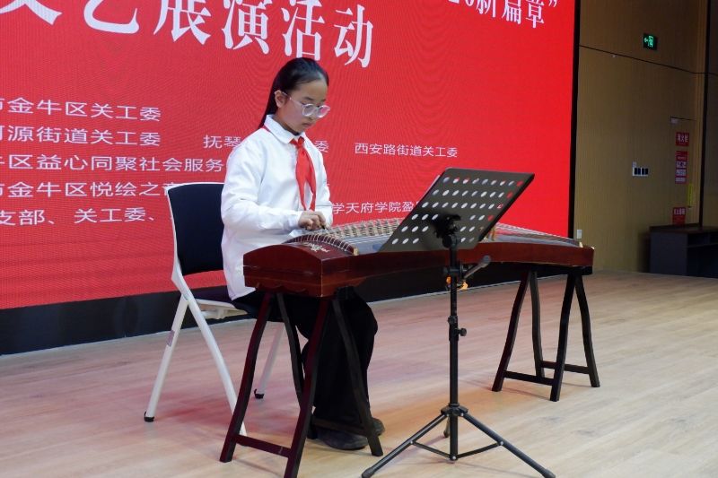 展演在陸家橋社區毛宏壁的古箏獨奏《萬疆》中拉開序幕,琴弦流轉間,山河壯闊的圖景徐徐鋪展,婉轉旋律里飽含著對祖國的深情眷戀,為活動奠定了莊重而溫情的基調。隨后,長久社區、匯澤社區、陸家橋社區、清水河社區的青少年們攜手帶來朗誦《七子之歌》,孩子們以清澈真摯的嗓音,重溫那段期盼故土回歸的深情告白,跨越時空的家國共鳴在現場久久回蕩。
