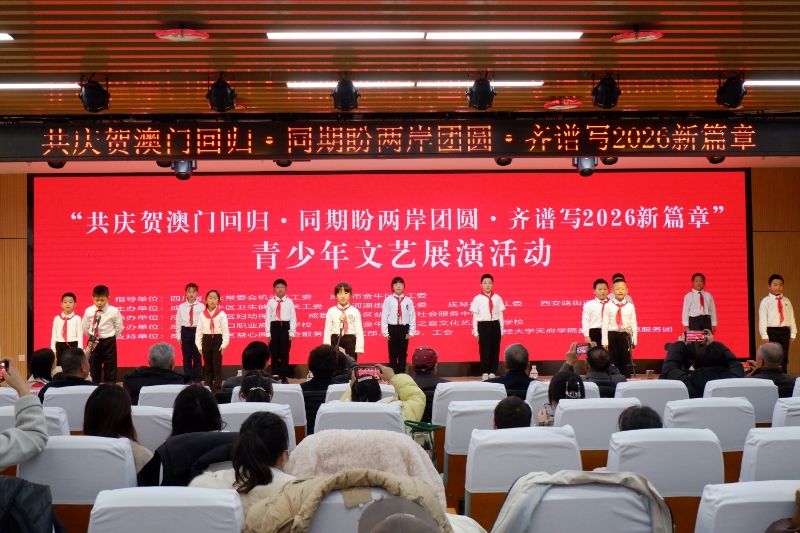來自沙河源街道、撫琴街道、西安路街道的青少年合唱隊唱響《七子之歌—澳門》、《我和我的祖國》。熟悉的旋律喚起共同的記憶,26年來澳門背靠祖國實現的滄桑巨變,在歌聲中化為真切的自豪感,抒發了對祖國母親的赤誠熱愛。洞子口職業高級中學學子與匯澤社區楊軒乙、長久社區陳亭汐聯袂演繹的《七子之歌—臺灣》,則以深情婉轉的唱腔,傳遞出兩岸同胞血脈相連的牽掛與對祖國完全統一的熱切期盼,道出了全體中華兒女的共同心聲。