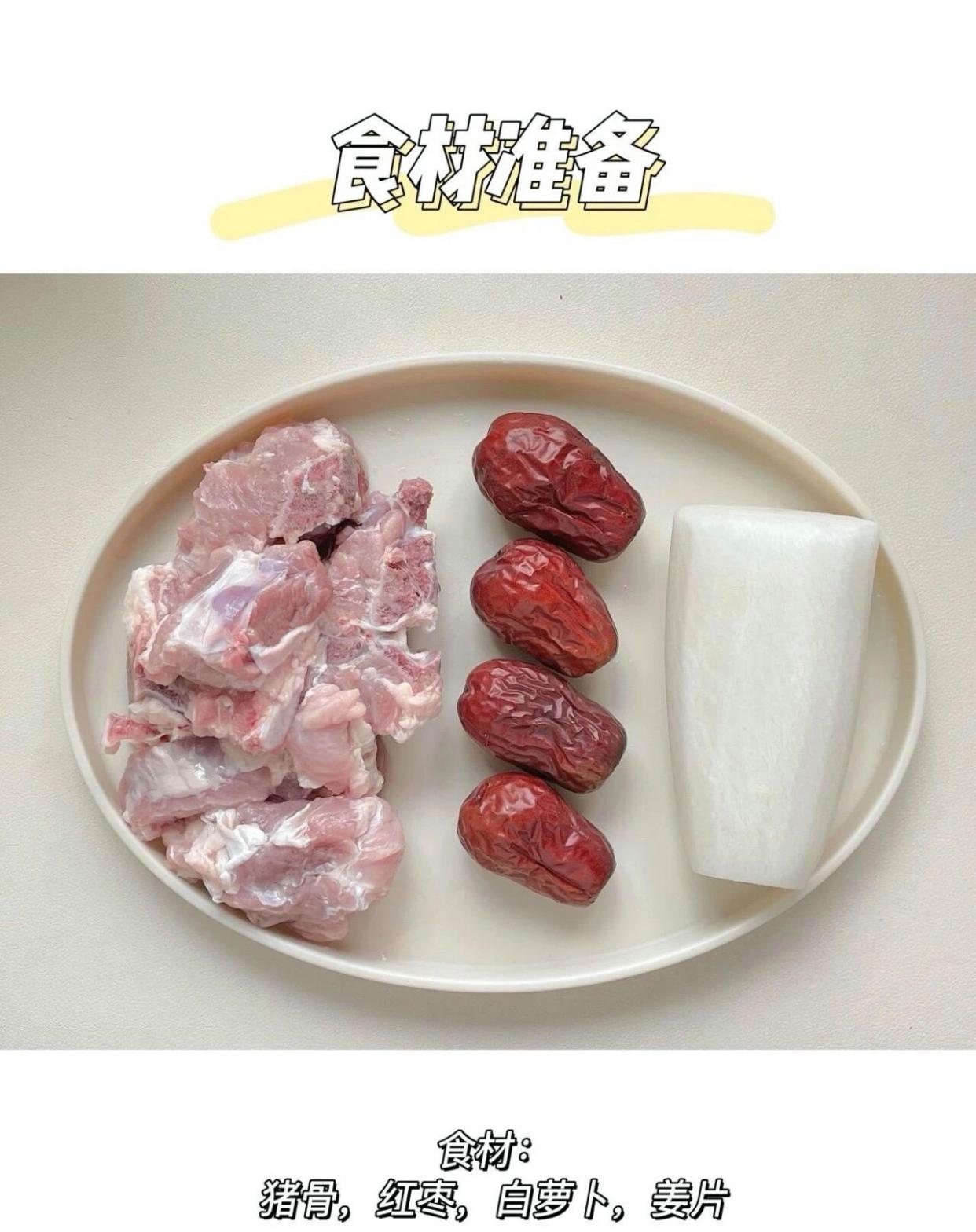 食材:豬骨1斤+白蘿卜半根+紅棗5顆