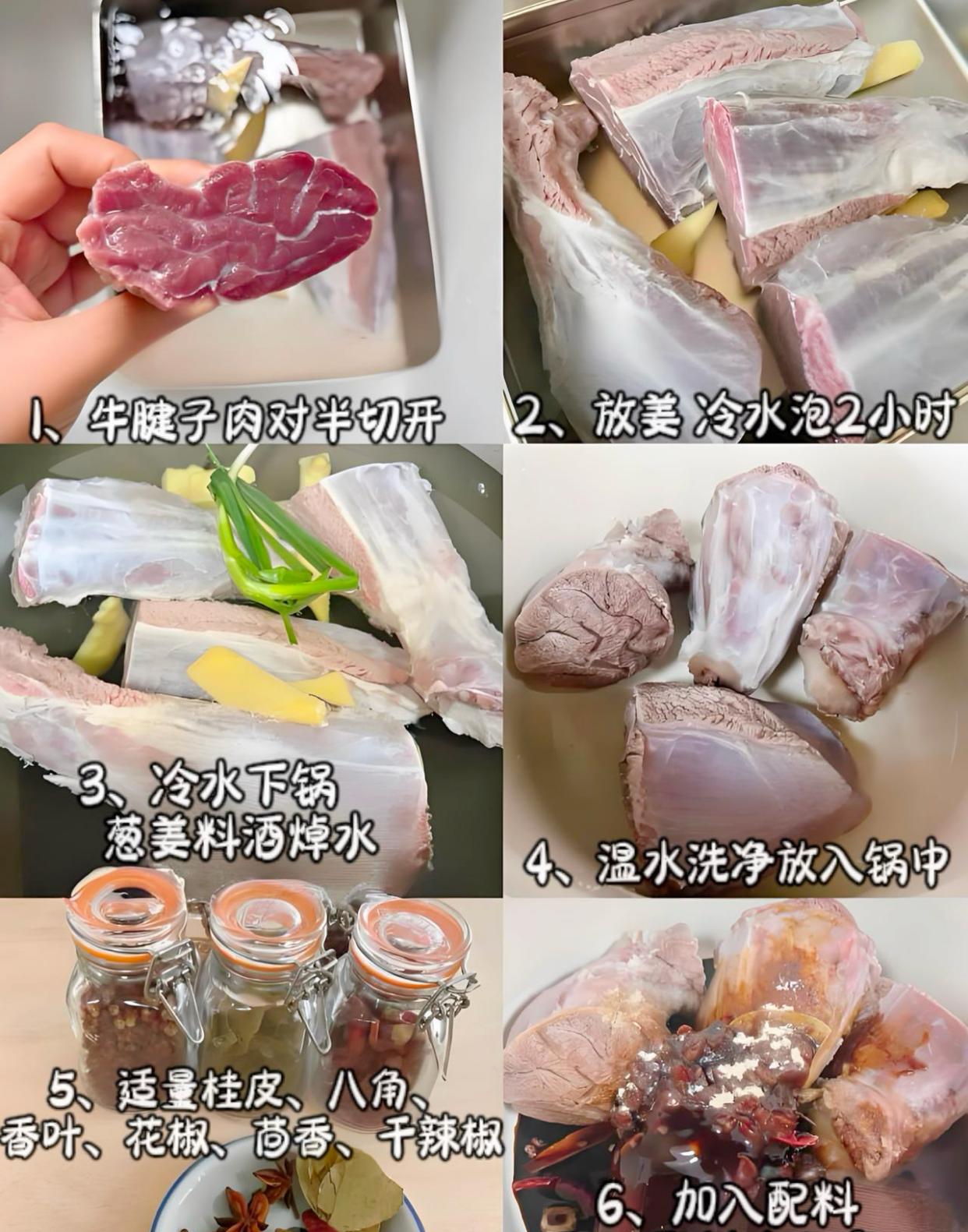 【詳細步驟】 牛腱子切塊焯水加料酒姜片去腥? 所有香料+醬料放入燉鍋加水沒過食材~