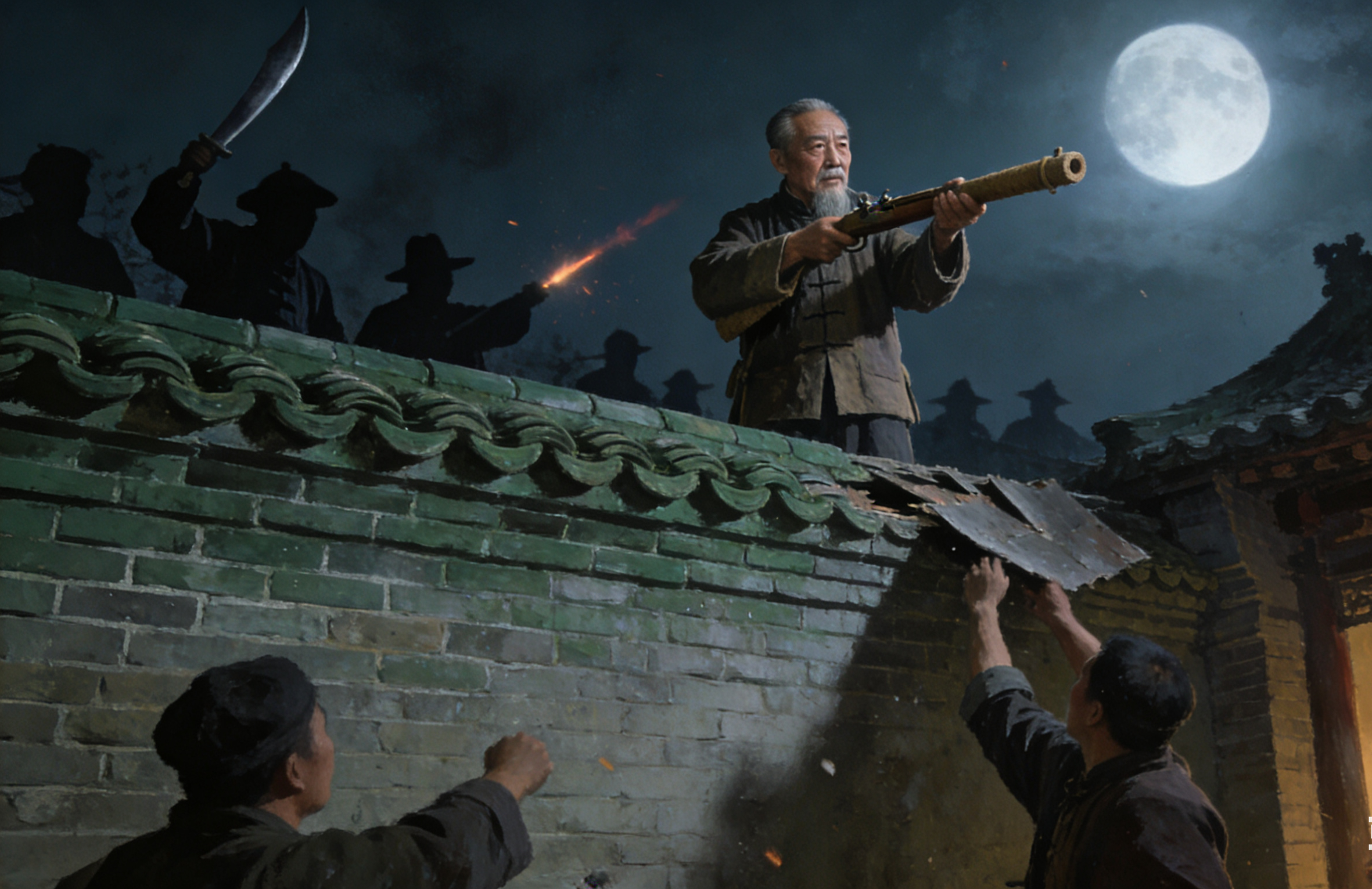 一時(shí)間,槍聲“砰砰”響個(gè)不停,大人的吆喝聲、馬匹的嘶鳴聲混在一處,嚇得奶奶躲在屋中不敢出去。曾祖站在院子中央,眉頭擰成了疙瘩,嘴里不停地喊:“守住墻頭!別讓他們進(jìn)來(lái)!”