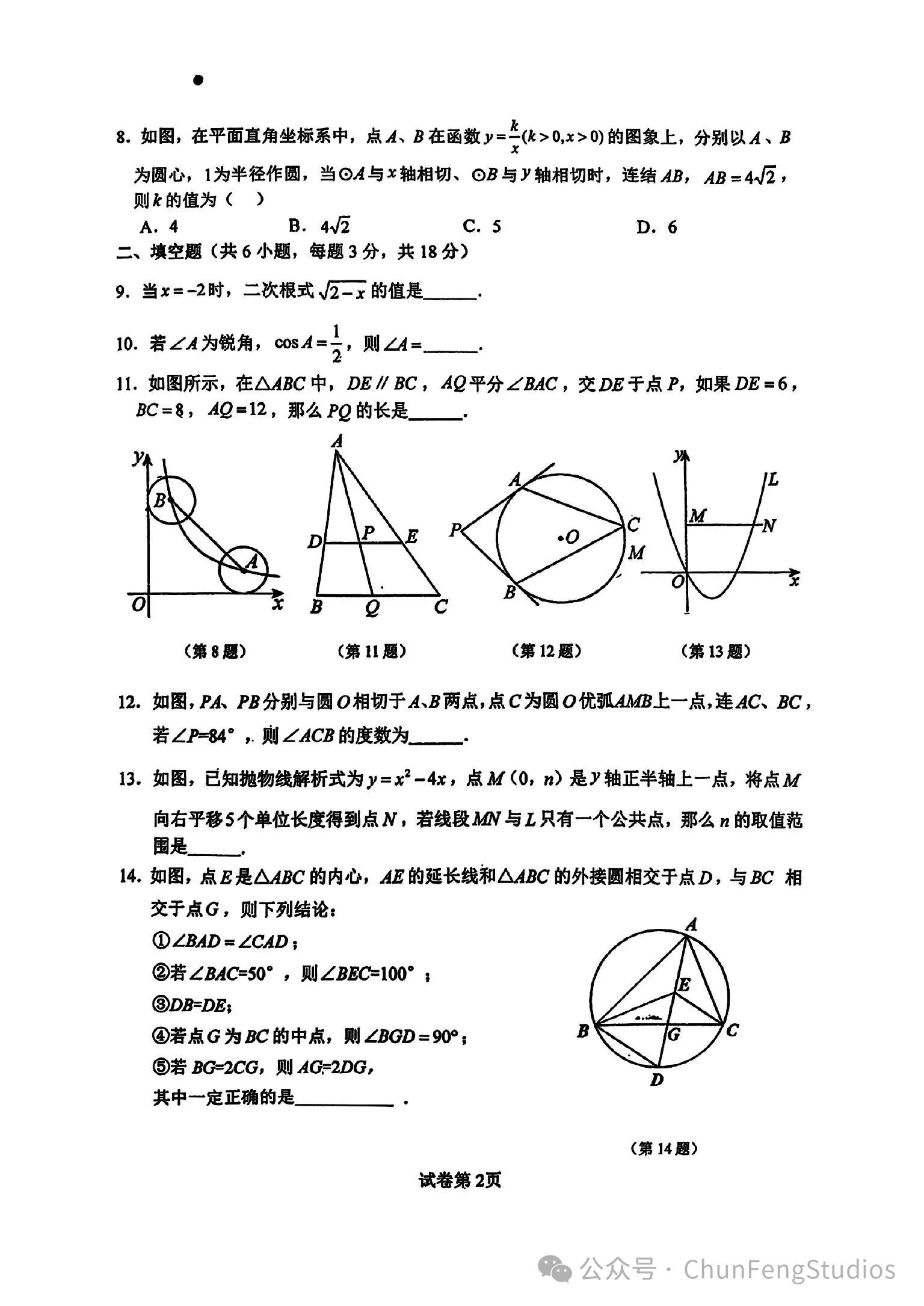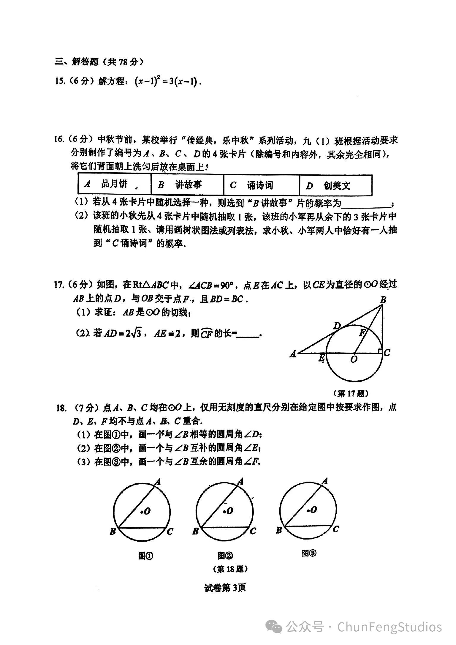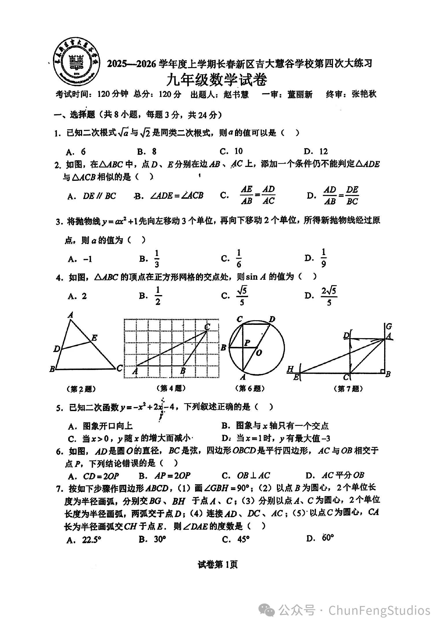 慧谷學(xué)校九上數(shù)學(xué)第四次大練習(xí)