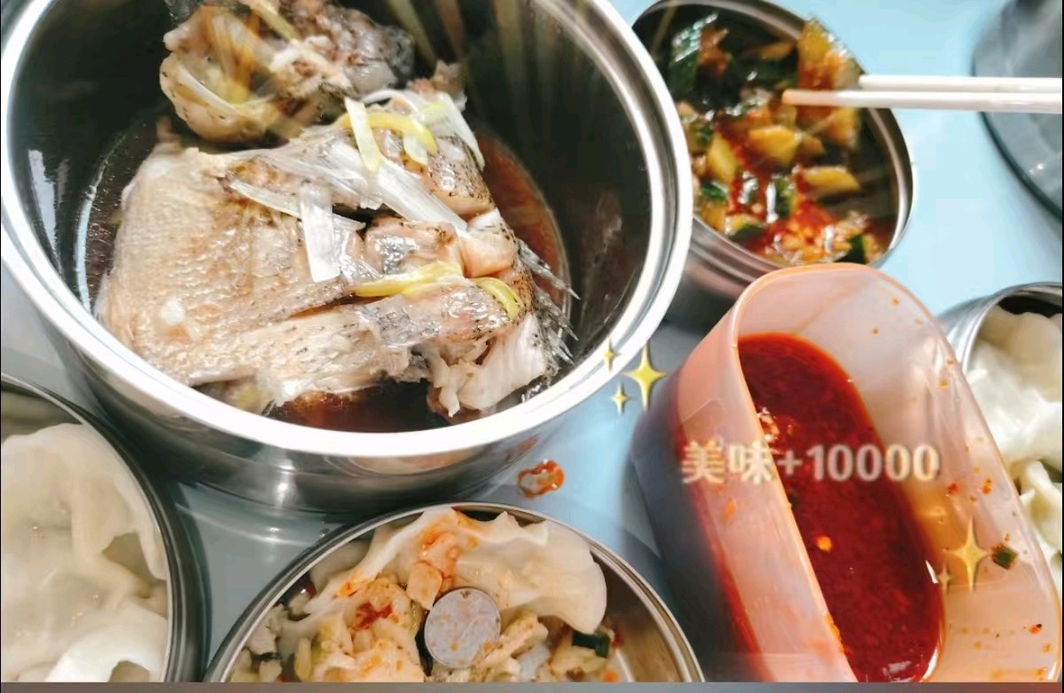 餃子香鮮四溢,魚肉蒸得更是恰到好處,