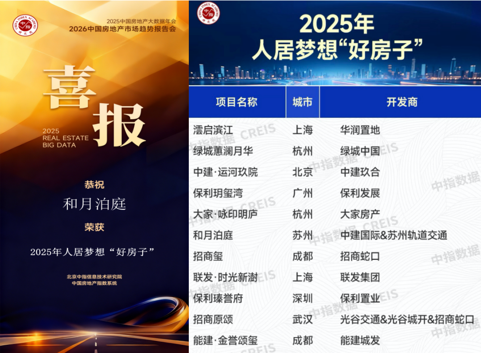 和月泊庭項目由央企中建國際與國企蘇州軌道交通聯(lián)袂打造,榮獲“2025年人居夢想好房子”前十,以“五好”方法論為基礎(chǔ),深度融合國際經(jīng)驗與蘇州本土文化。
