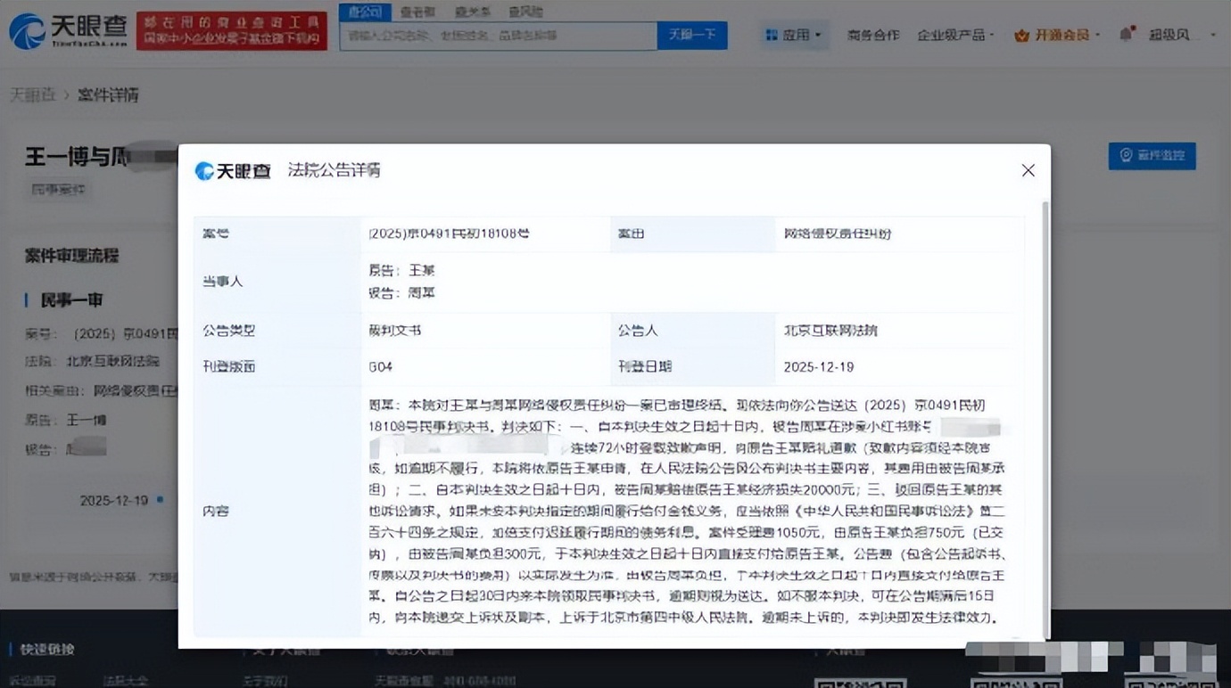 判決結(jié)果已經(jīng)出了,“周某”不光要向王先生賠禮道歉,更要賠償對方兩萬元,