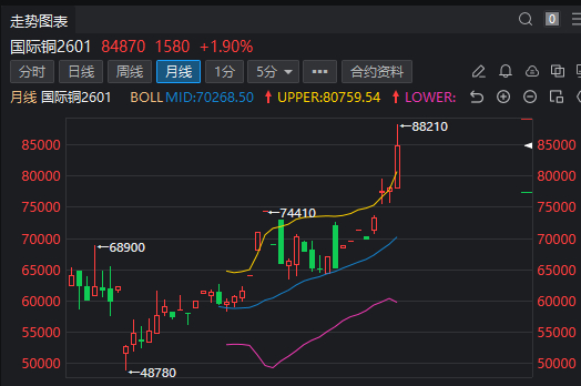 對(duì)于行情的大幅波動(dòng),市場(chǎng)分析認(rèn)為,第一,礦端供應(yīng)擾動(dòng)頻發(fā)加劇市場(chǎng)緊張預(yù)期。2025年下半年以來(lái),全球銅礦供應(yīng)持續(xù)受到干擾,7月智利El Teniente銅礦因事故停產(chǎn),9月印尼Grasberg銅礦停產(chǎn)預(yù)計(jì)將持續(xù)至2027年。第二,機(jī)構(gòu)唱多強(qiáng)化市場(chǎng)看漲情緒。高盛在最新報(bào)告中重申銅是其最看好的工業(yè)金屬,預(yù)計(jì)2026年均價(jià)將達(dá)11400美元/噸,并維持2035年15000美元/噸的長(zhǎng)期目標(biāo)價(jià)預(yù)測(cè)。該機(jī)構(gòu)指出,銅礦新增產(chǎn)能受資源稟賦、環(huán)保審批和資本開(kāi)支三重約束,而全球能源轉(zhuǎn)型與AI投資浪潮將持續(xù)推高需求,預(yù)計(jì)2026年將出現(xiàn)40-60萬(wàn)噸的結(jié)構(gòu)性供應(yīng)缺口。第三,宏觀環(huán)境改善助力銅價(jià)上行。11月美國(guó)CPI同比上漲2.7%,低于預(yù)期的3.1%,強(qiáng)化了美聯(lián)儲(chǔ)降息預(yù)期,美元走弱為大宗商品提供支撐。