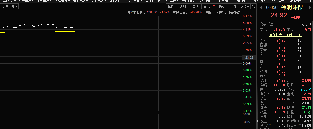 12月22日,偉明環保(603568)股價大漲。截至發稿,股價漲幅近5%,成交額超2億元。
