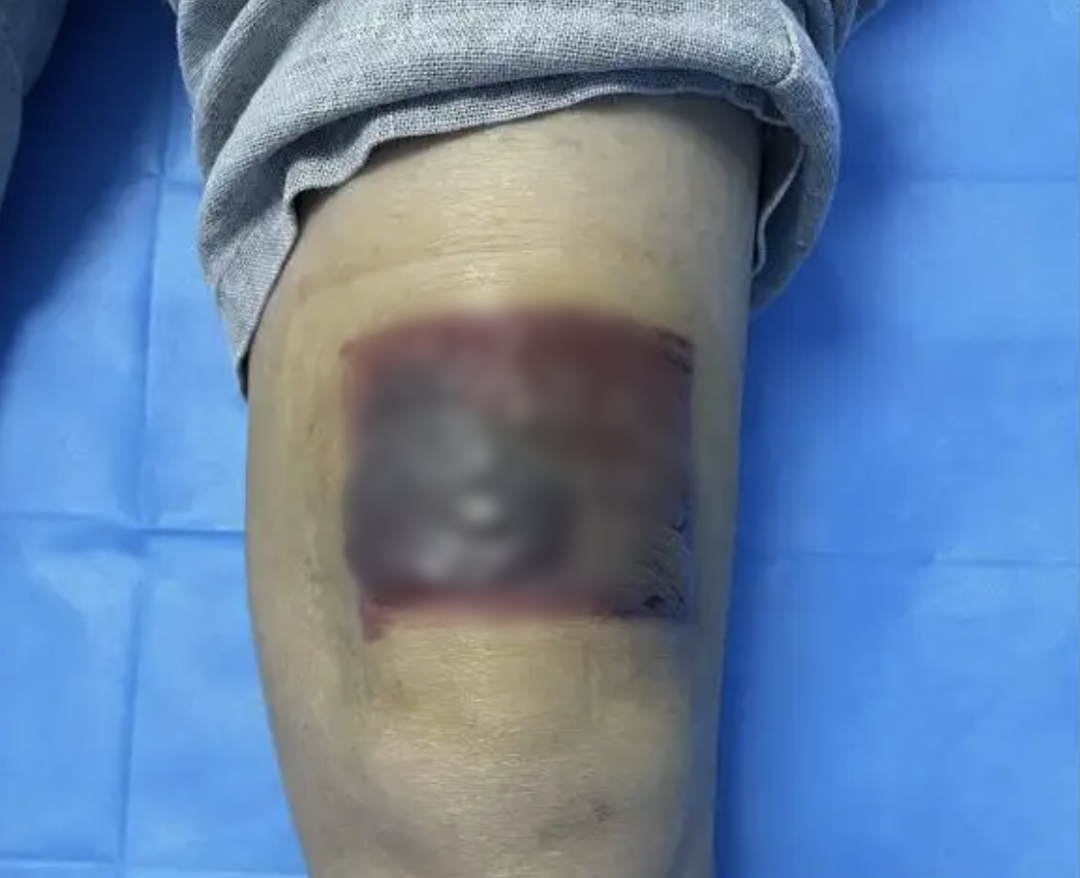 張凱為了緩解左膝關(guān)節(jié)在冬天出現(xiàn)的疼痛,連續(xù)三晚將45℃暖寶寶直接貼在膝蓋上入睡。不料數(shù)日后,紅斑處迅速發(fā)展成巨大水皰,疼痛劇烈。到長沙市中心醫(yī)院皮膚科就診,副主任醫(yī)師趙珊診斷其為深達(dá)皮下組織的Ⅲ度燙傷,罪魁禍?zhǔn)渍强此茰睾偷摹暗蜏貭C傷”。
