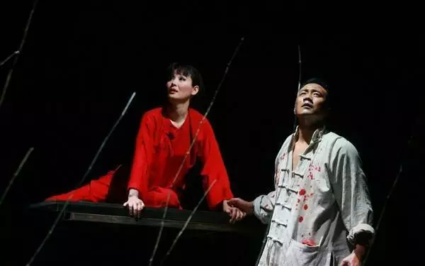 1937年完成的《原野》,是曹禺的“生命三部曲”之最,也是他的唯一的一部農(nóng)村生活題材的戲劇。戲劇中與“強烈的愛”交織的同時是“復仇”。仇虎從監(jiān)獄回來就要向焦家報殺父之仇,而面對地主“焦閻王”的突然死亡,他卻陷入不知找誰報仇的困惑。戲劇也有外部矛盾沖突轉向心理矛盾的沖突,當他依據(jù)“父債子還”“父仇子報”“斷子絕孫”的傳統(tǒng)進行復仇后,卻不能擺脫內(nèi)心的“罪惡感”,陷入了靈魂的掙扎與斗爭。最后故事的結局不是仇虎的復仇,而是背焦母追趕進原野的復仇結果,隨之也就又出現(xiàn)了一個反抗的靈魂,是一種即使復仇成功然而卻也沒有解決矛盾(或者說不試圖解決)的生存困惑。?