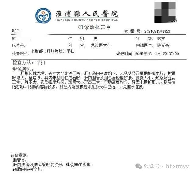 59歲的王大爺因持續性上腹部疼痛7小時急診入院,經MRCP檢查提示膽總管輕度擴張、十二指腸壁段結石,結合膽囊增大、多發結石及肝功能異常等癥狀,被確診為膽囊結石伴急性膽囊炎、膽總管結石,病情需及時干預,否則可能加重肝膽損傷。