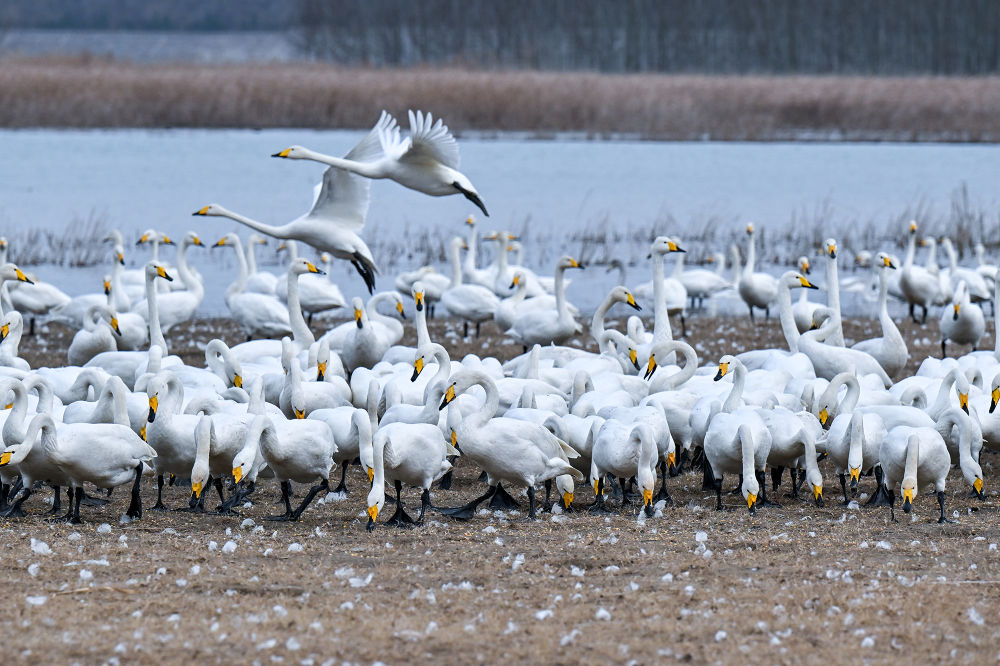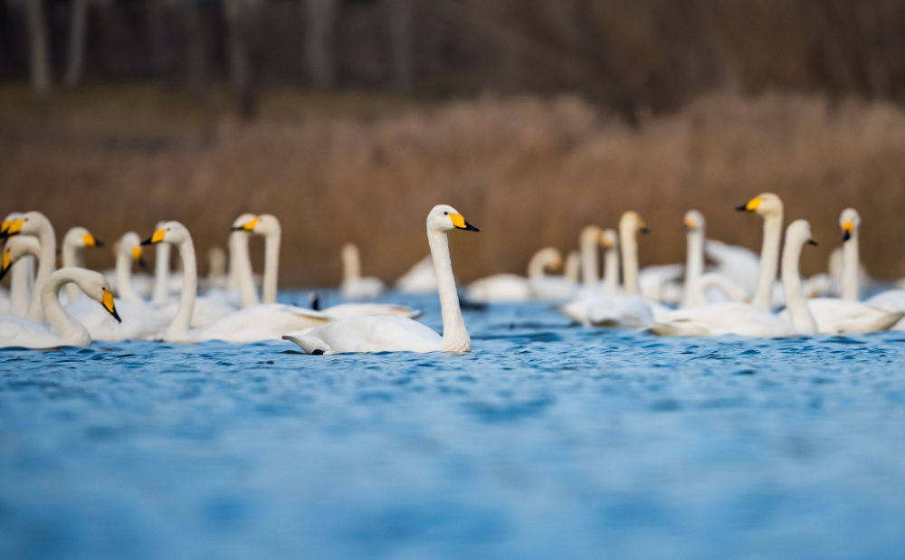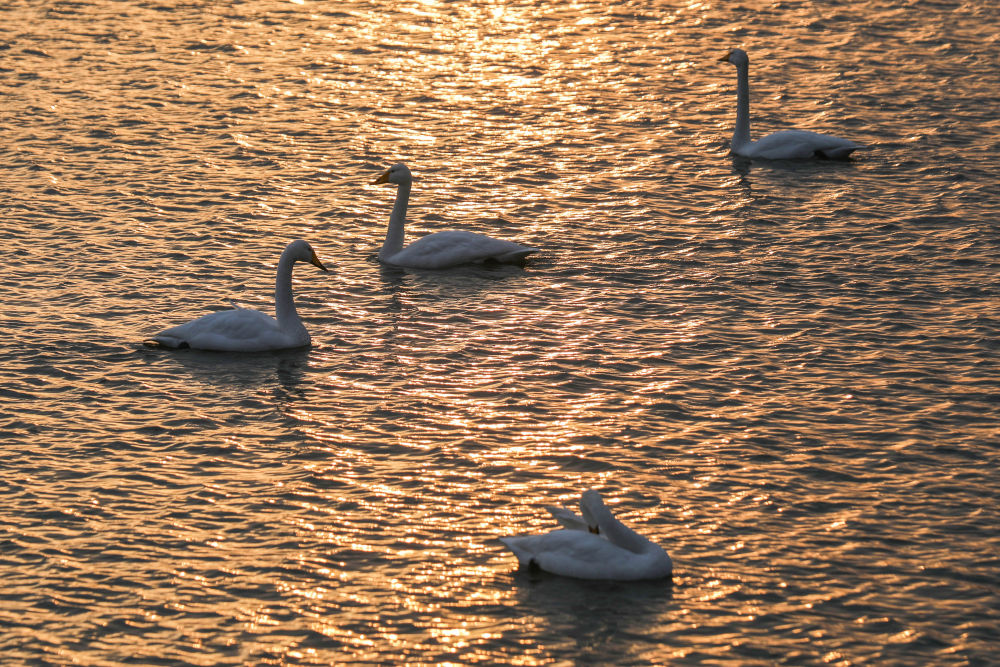 進入冬季,大批白天鵝來到河南省三門峽市黃河濕地棲息越冬。近年來,隨著當地不斷加強黃河沿岸濕地生態保護工作,白天鵝的數量逐年增加。目前,三門峽黃河岸邊40余萬畝淺灘濕地已迎來萬余只白天鵝。