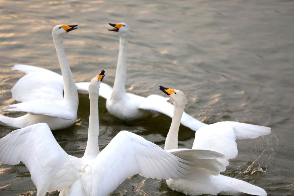 ↑12月21日在河南省三門峽市天鵝湖國家城市濕地公園拍攝的白天鵝。新華社發(王高超攝)