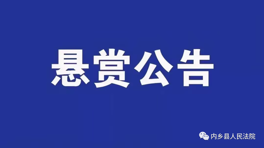 為切實維護債權人的合法權益和法律權威,促進社會信用機制的建立,內鄉縣人民法院依照《中華人民共和國民事訴訟法》和《最高人民法院關于民事執行案件執行中財產調查若干問題的規定》中的相關規定和申請執行人的申請,特發布執行懸賞公告如下: