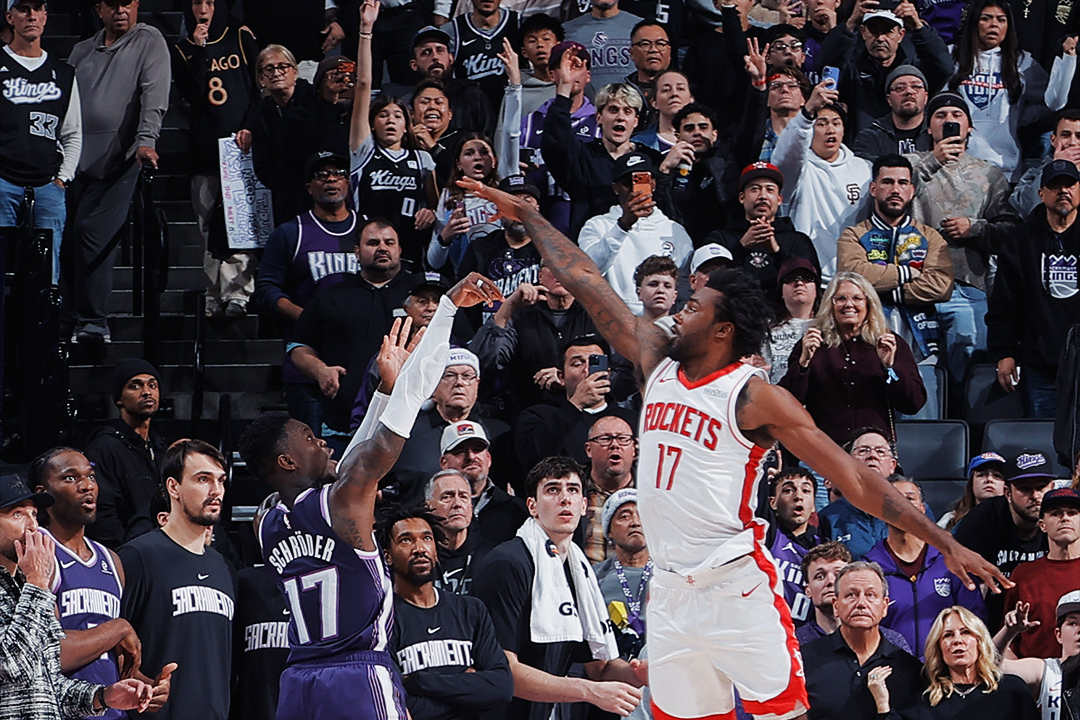 你說他們表現(xiàn)堅韌,確實(shí)是和火箭隊僵持到了最后。但關(guān)鍵時刻,一個回合內(nèi)他們先是丟籃板,緊接著防守又被打穿。拼盡全力拿到一個籃板球,火箭隊的包夾一上來,立馬又失誤了。但你要說國王隊不爭氣吧,他們又能從杜蘭特手中搶下來球,德羅贊完成反擊飛扣。而且很快,國王隊將分差追至只差3分,杜蘭特站出來出手跳投,卻沒能命中。而施羅德持球火速推進(jìn)反擊,給到在底角站好位置的威少,三分自信出手!穩(wěn)穩(wěn)命中,完成絕平!隨著火箭隊反絕殺不中,硬是被國王隊將比賽拖進(jìn)加時!加時賽上,火箭隊的問題凸顯,國王隊則有著清晰的策略,那就是挑著謝潑德來打。