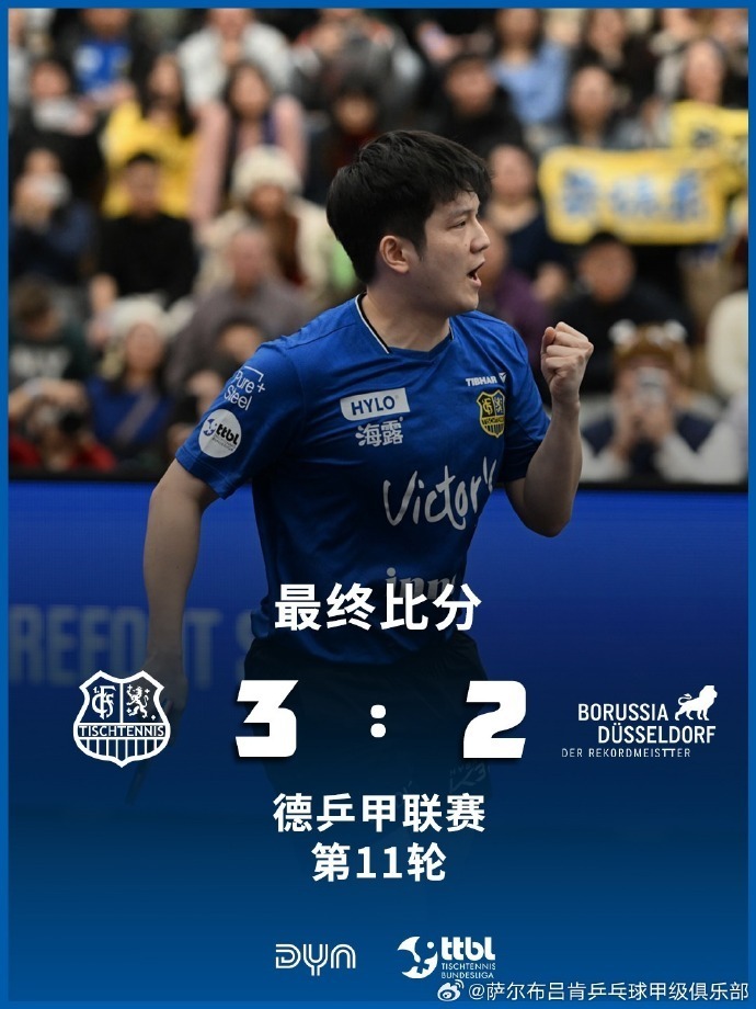 對于這場比賽,薩爾布呂肯乒乓球甲級俱樂部微博寫道:“ 完美的年終收官!在超過3500名球迷的助威下,我們主場3:2力克來自杜塞爾多夫的紀錄冠軍球隊。樊振東獨得兩分,弗朗西斯卡&邁斯納奉獻世界級雙打。感謝到場的每一位球迷以及所有支持我們的朋友!滿懷動力,迎接全新的2026年!”那么,就讓我們期待樊振東的2026年更好!