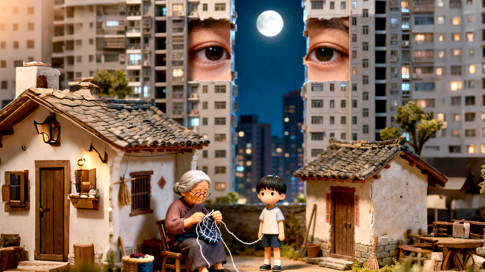 而狗蛋不知道——在遙遠(yuǎn)的城市,也有兩雙眼睛,正透過(guò)高樓的縫隙,數(shù)著同一輪清瘦的月亮。